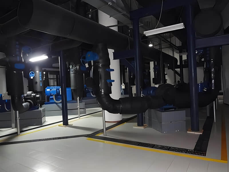 一、設(shè)備減振處理:對機(jī)房內(nèi)的設(shè)備進(jìn)行減振處理,采用減震器和減震墊等減振材料,減少設(shè)備振動產(chǎn)生的噪音。同時(shí),對管道支撐進(jìn)行優(yōu)化設(shè)計(jì),減少管道振動。